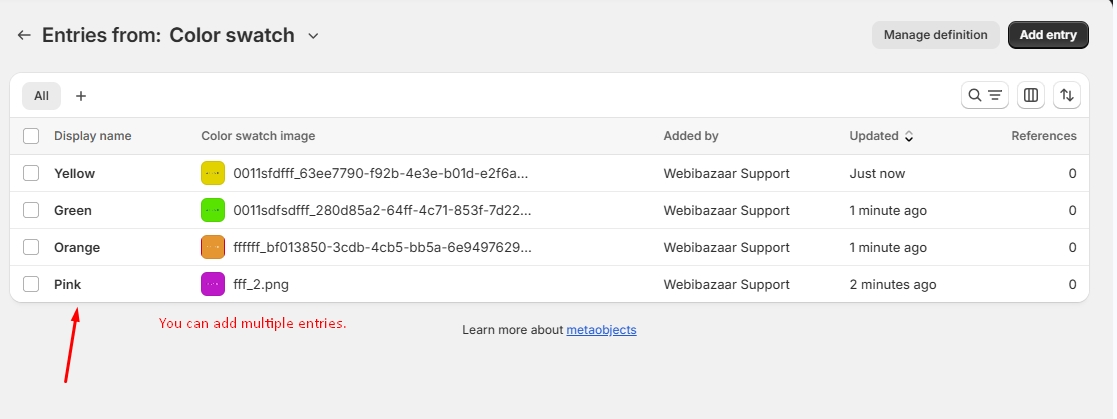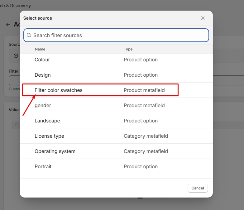 Display the color swatch using the metaobject in the collection filter, follow the steps below