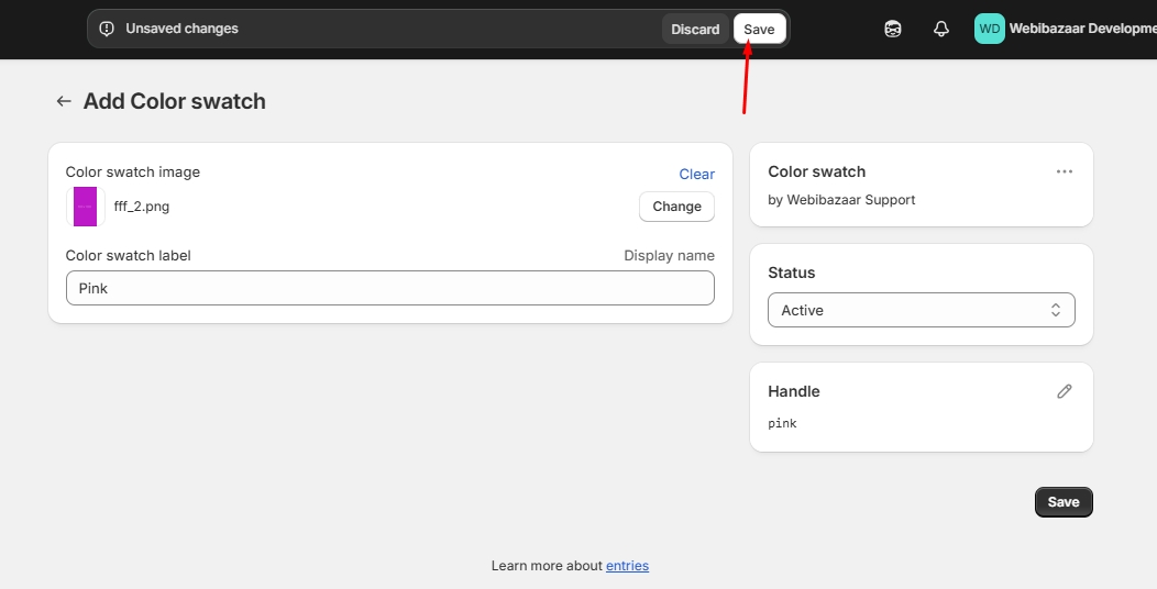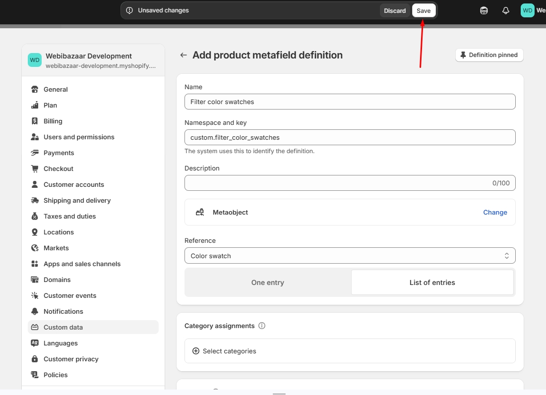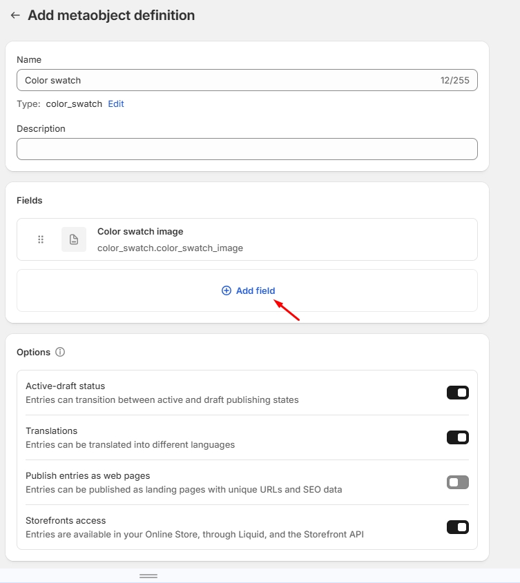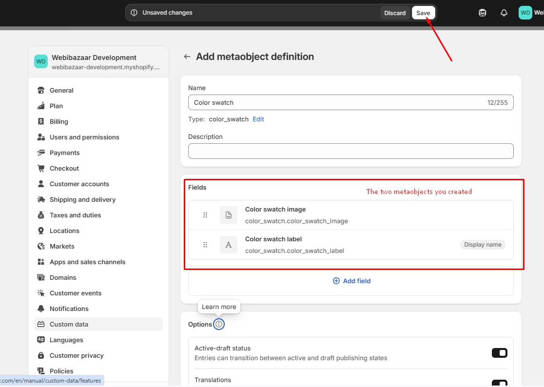 The metaobject fields you created will be displayed. Then click 'Save'.