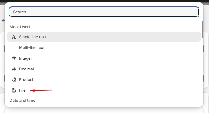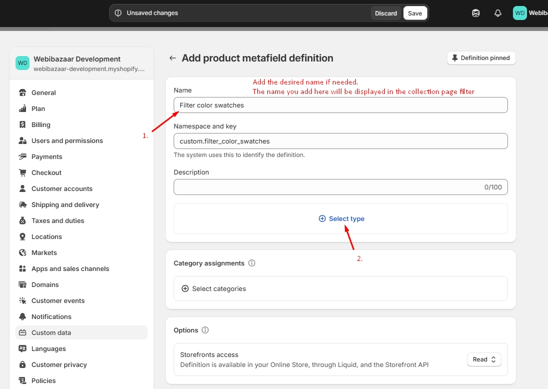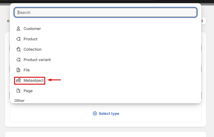 Add the desired name if needed. The name you add here will be displayed in the collection page filter. then click on Select type.