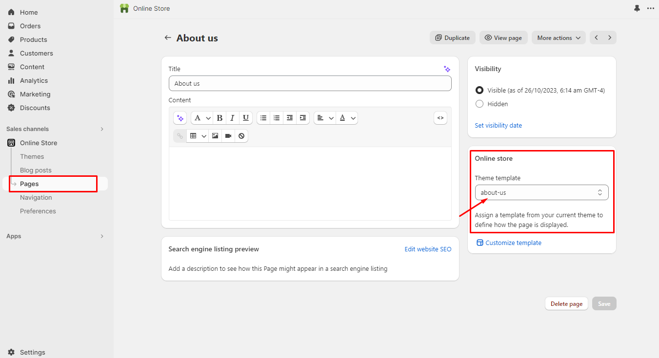 If you have a Shopify online store, then you can create webpages in your Shopify admin. Webpages contain information that rarely changes or that customers will often reference, like an “About Us” page or a “Contact Us” page.