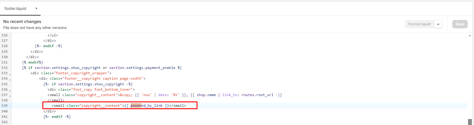 Go to Sections > **footer.liquid.**