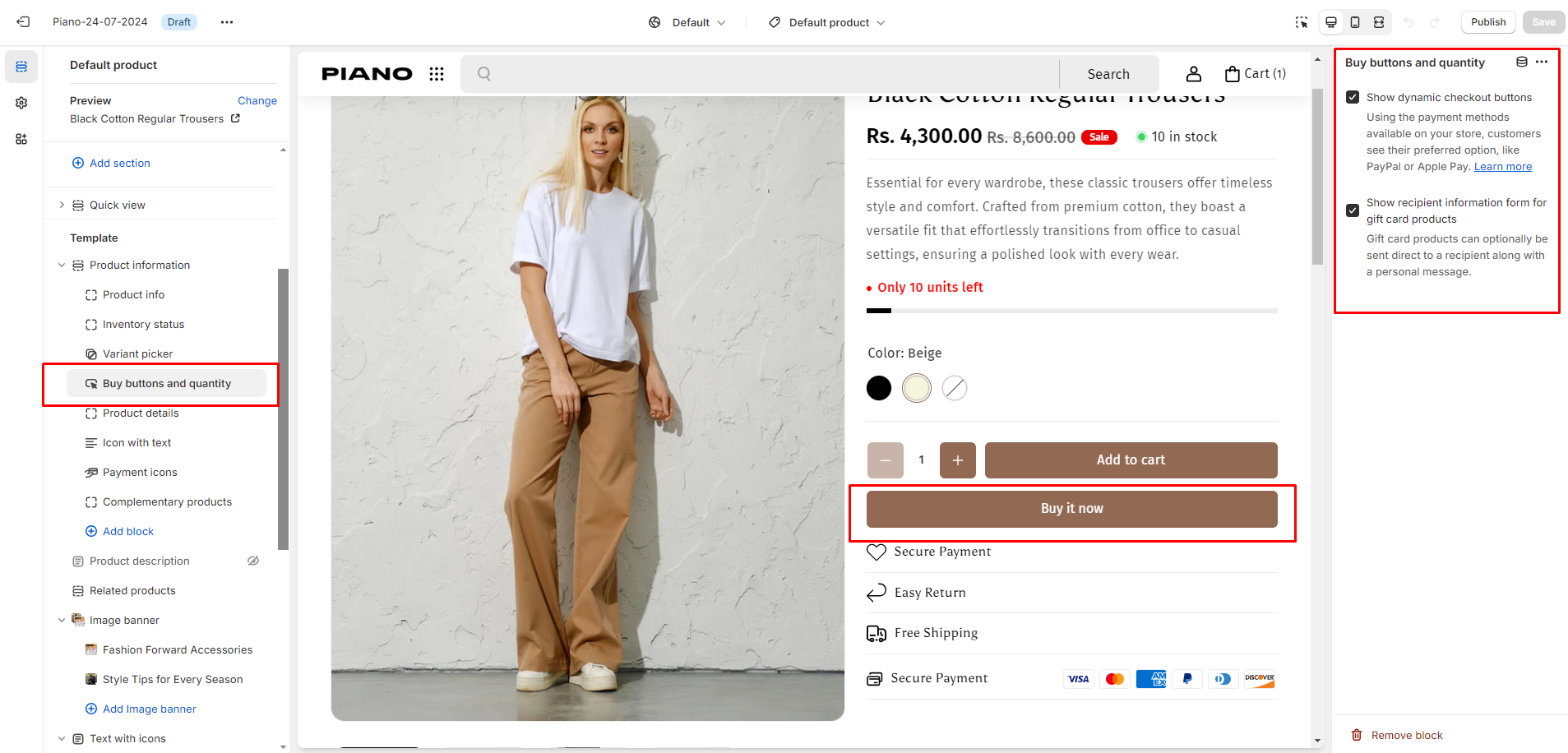 * In **Product information** section, click on **Buy buttons.**
