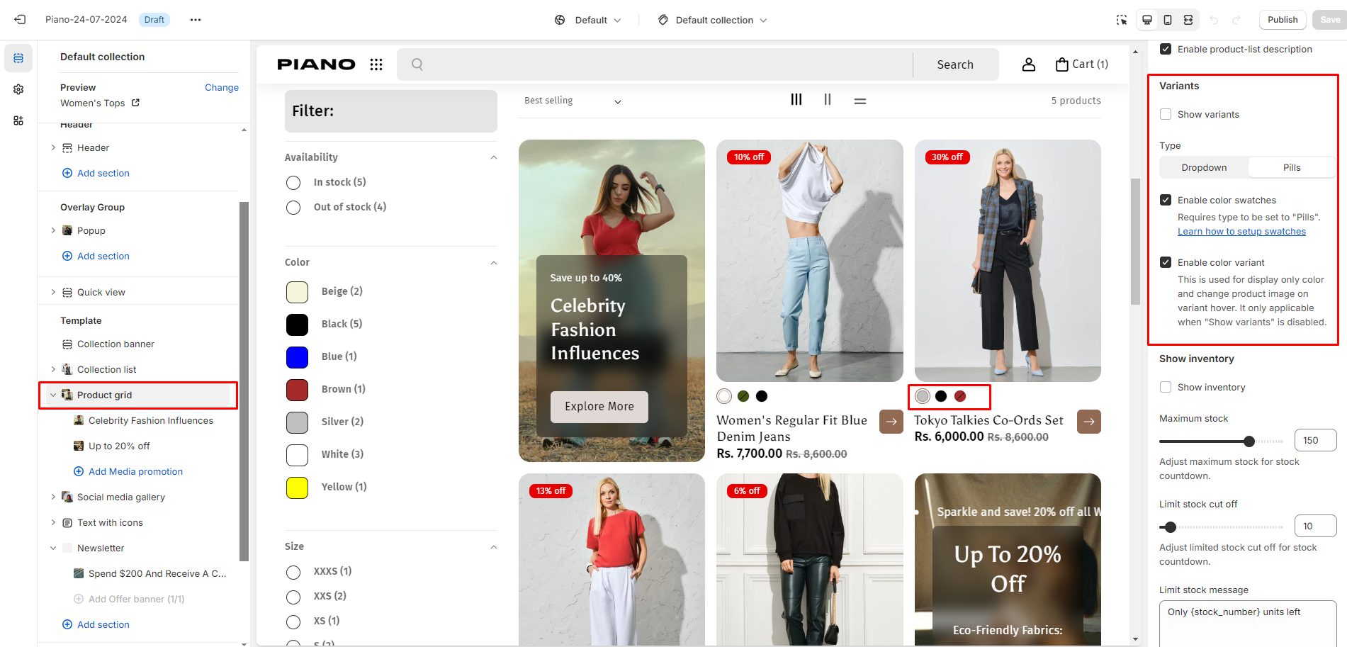 Once you enable the color swatch settings, Piano will look for any variant with the name "Color."