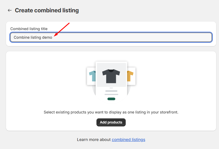 * Click on '<mark style="background-color:yellow;">Create Combined Listing</mark>' and enter the desired product name for the combined listing in the title field.