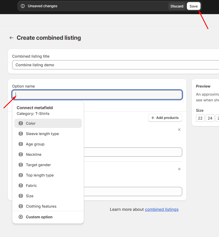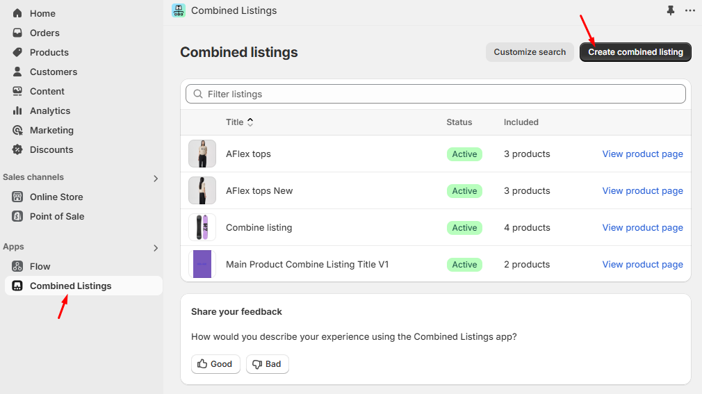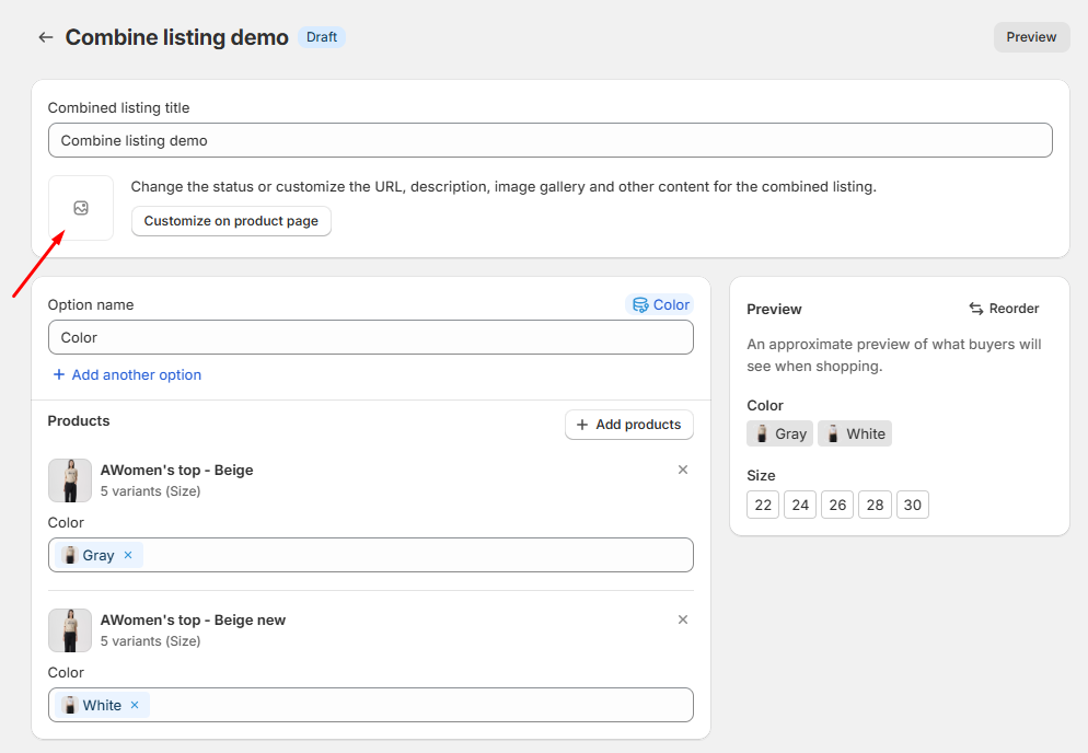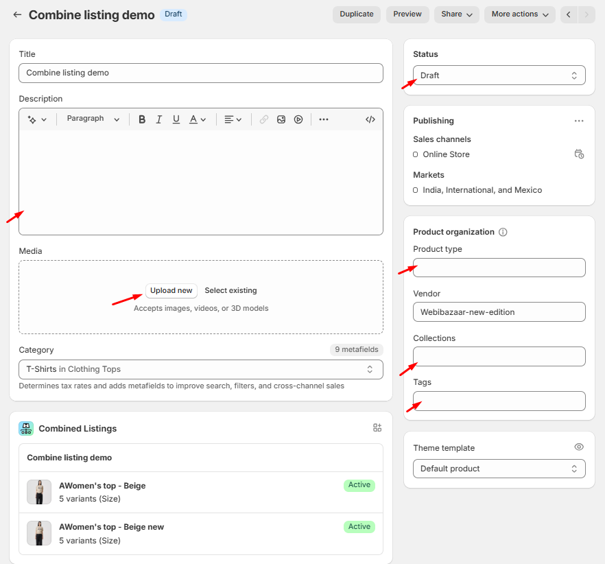 * The combined listing product has been created. Now, add the necessary content and click 'Save'.