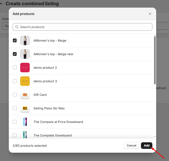 * Select the product and click on the '<mark style="background-color:yellow;">Add</mark>' button.