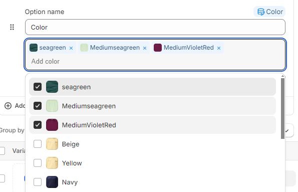 * Here, you can add a Color name along with its Color code, otherwise you can also upload an Image