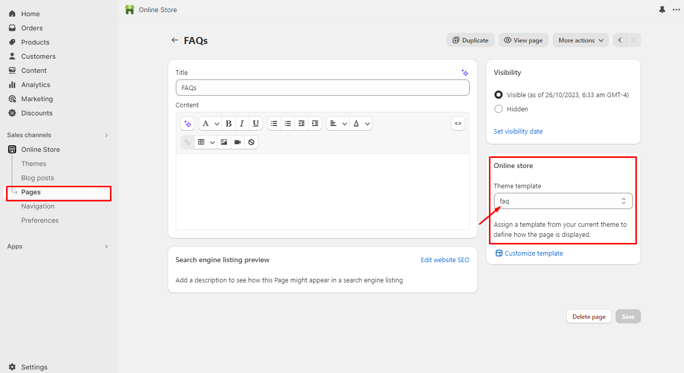 * Go to Online Store > Pages.