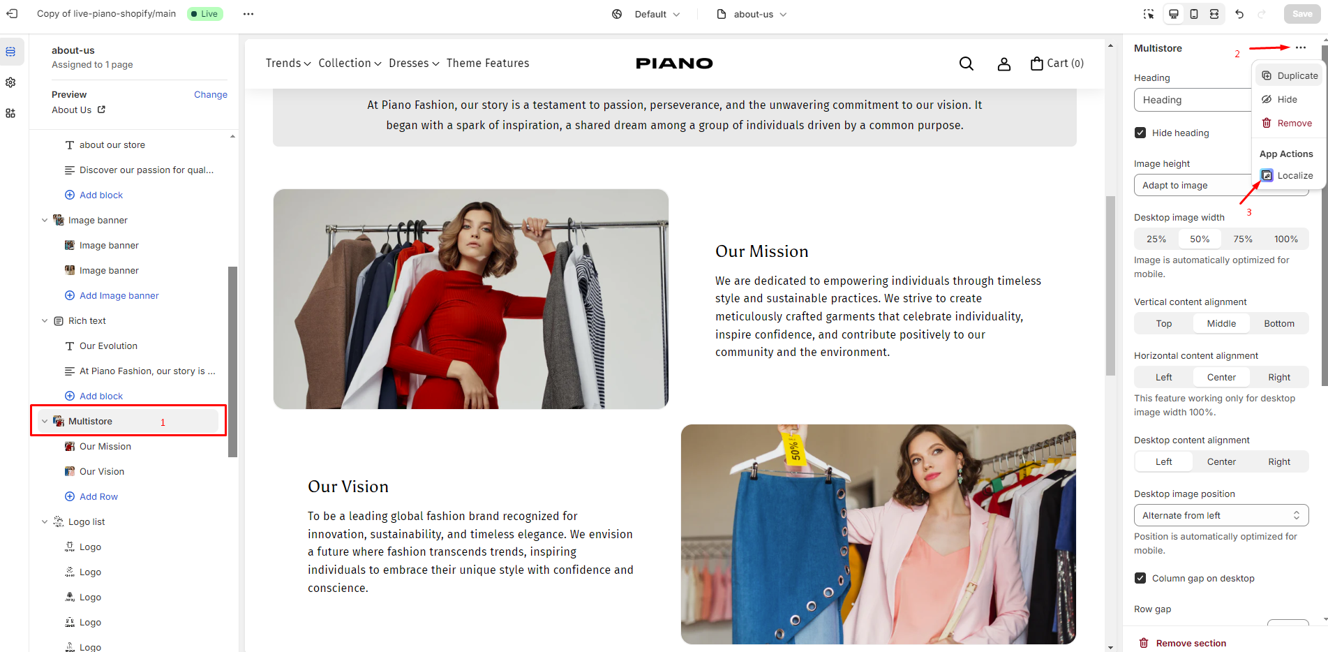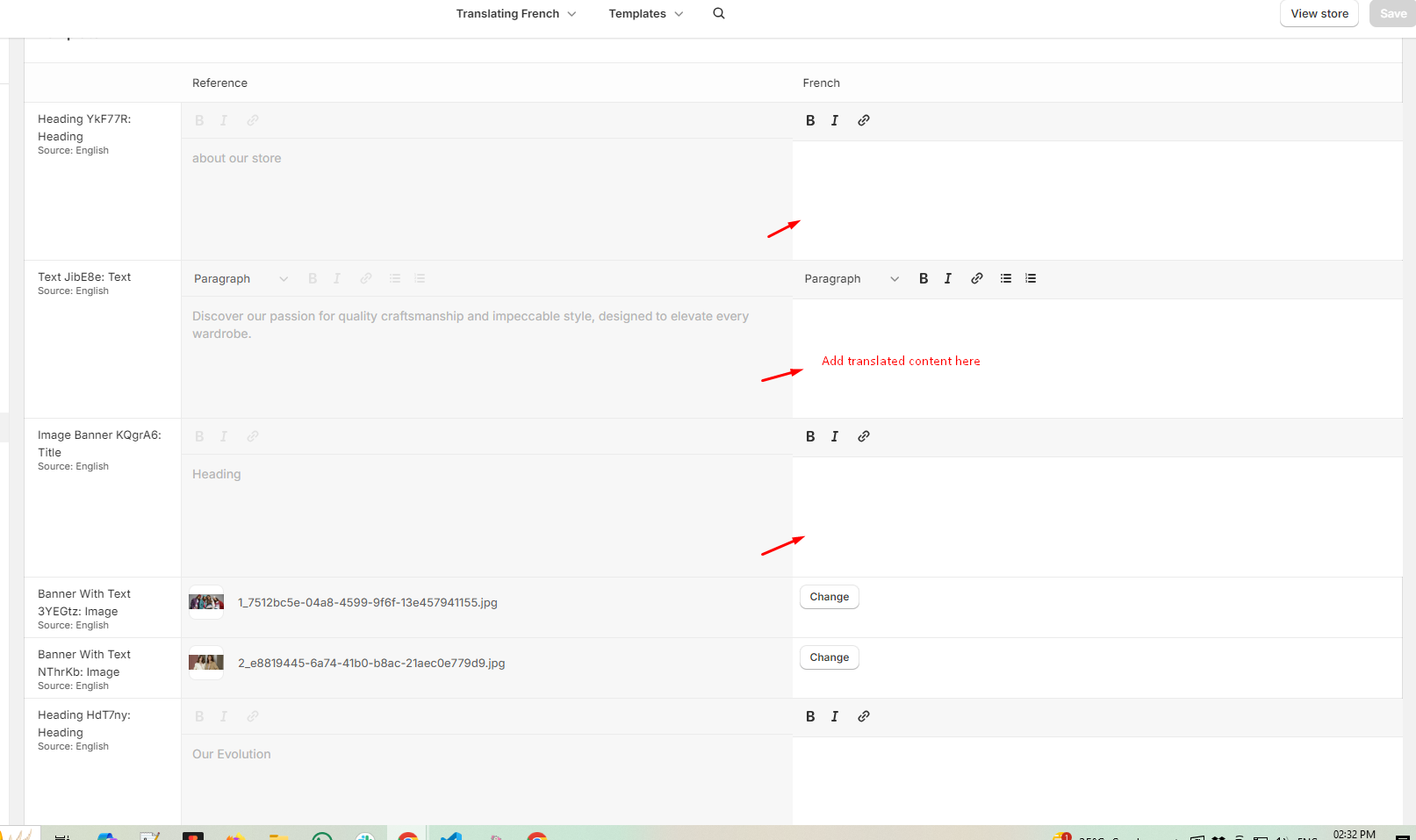 2. **If you have added any sections in the page template and need to translate them, follow the steps below.**