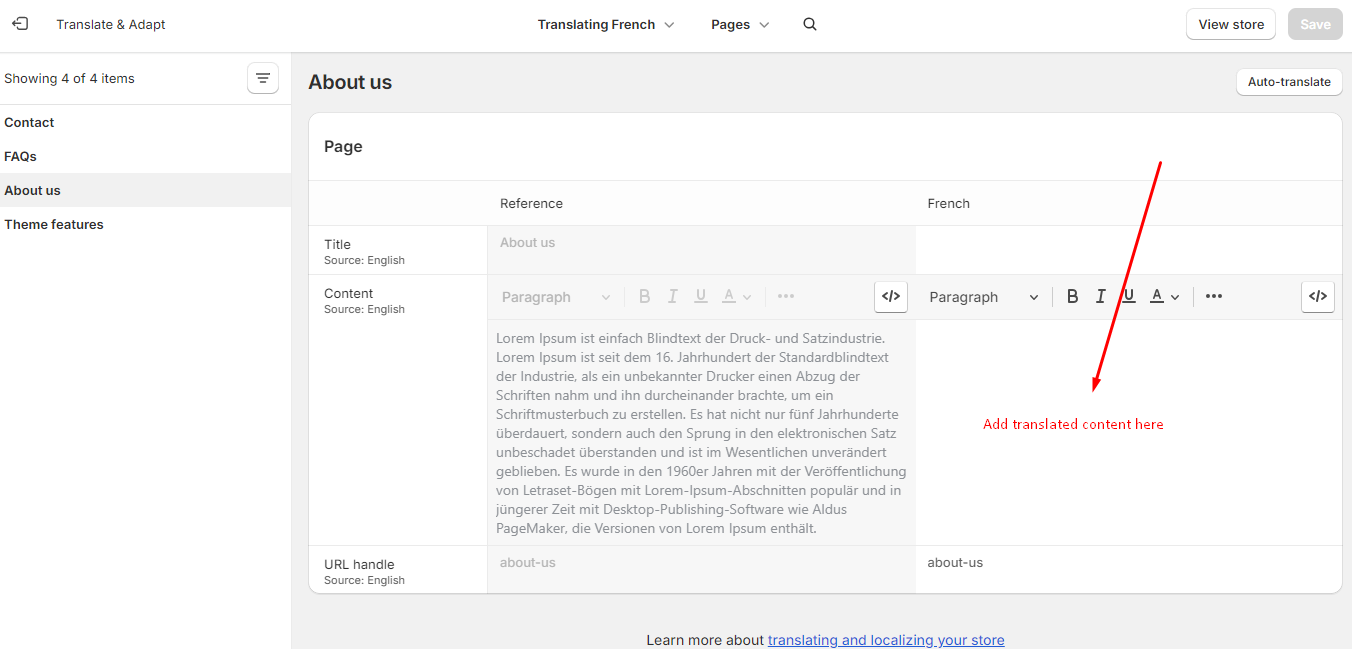 Even if you have added multiple languages, if you want certain content to be displayed in a different language, you can manually translate that specific content