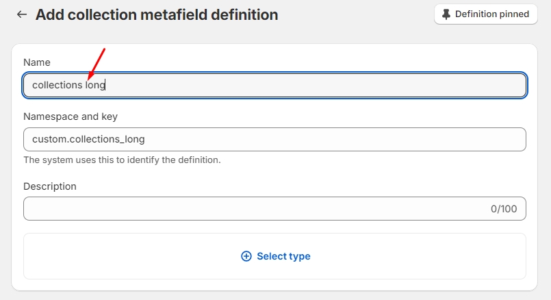 Collection longIn the Namespace and key field, entercustom.collection_long