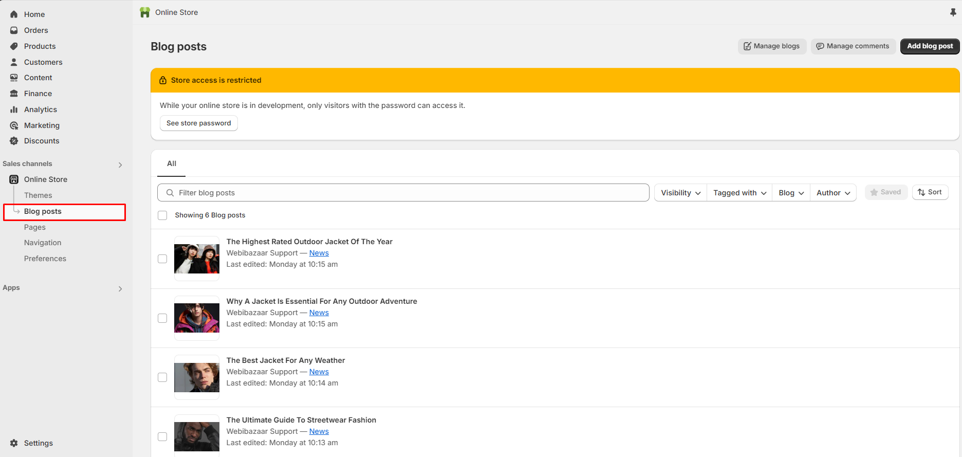 To add a Blog, go to Blog posts > Add blog post Add multiple blogs.