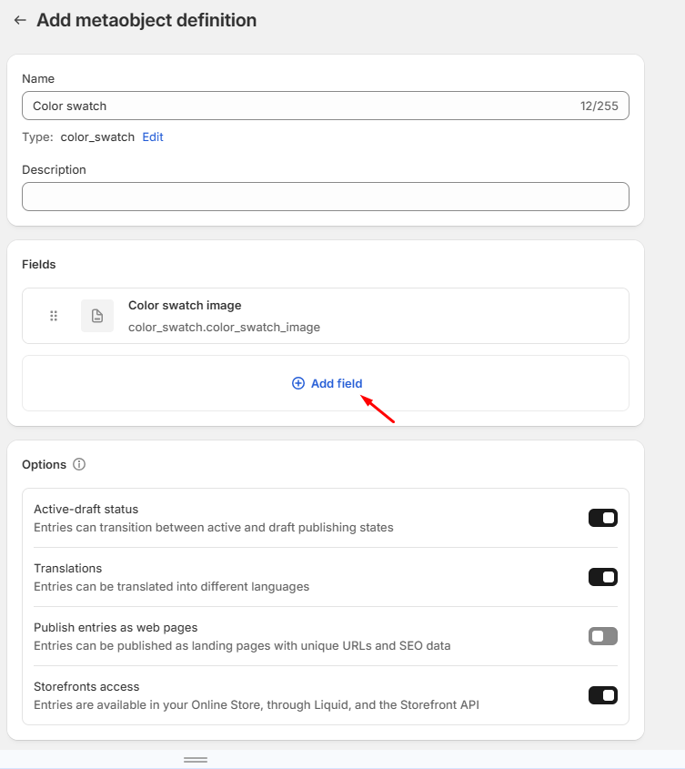 * The metaobject fields you created will be displayed. Then click 'Save'.