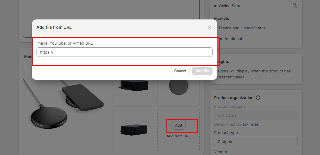 You can add videos for your product in two ways: uploading a video file or embedding a YouTube or Vimeo video link. If you’re uploading video files, then make sure that they meet the following requirements: